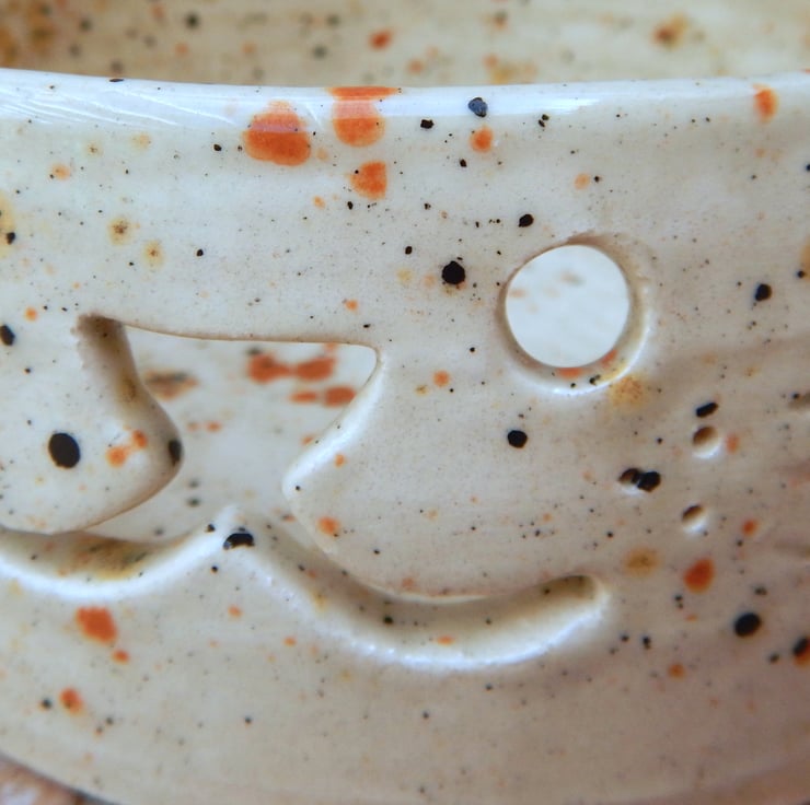 The bowl was thrown by me on my pottery wheel using strong white earthenware clay and then carved it out whilst still damp.