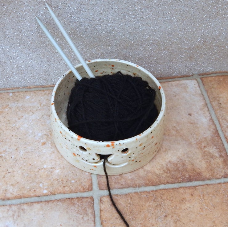 knit knitting crochet crocheter crocheting ceramic ceramics handthrown OOAK wheelthrown handmade hand wool useful tidy storage artisan british studio