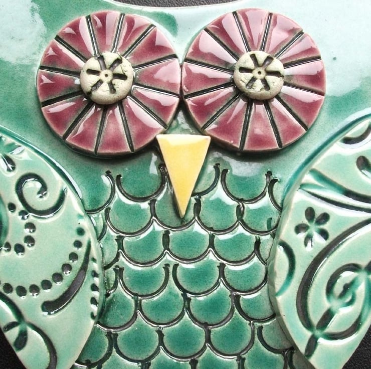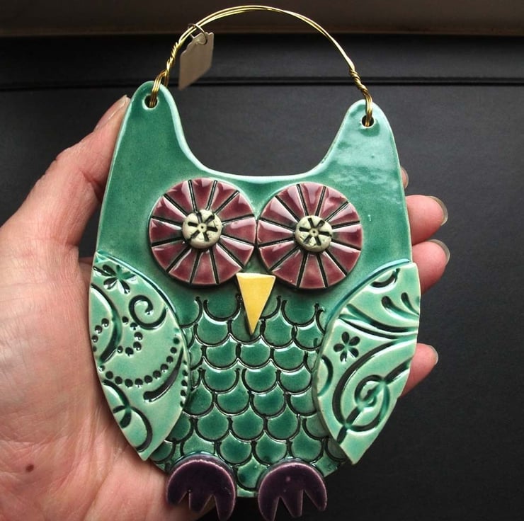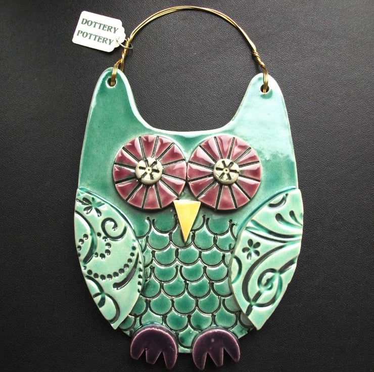 This cute ceramic owl is made from white earthenware clay with all the individual pieces hand cut and decorated.