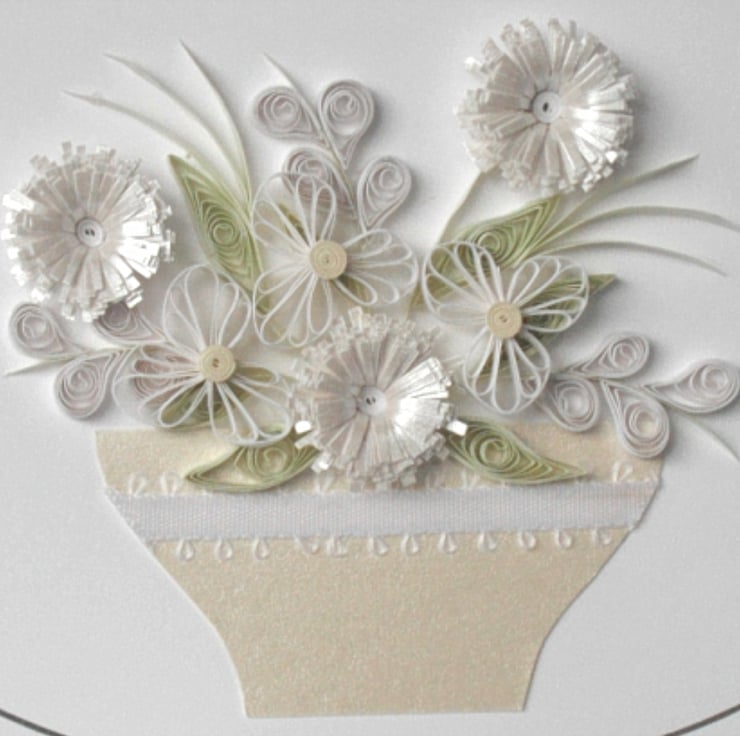 This pretty 30th anniversary card is sure to be appreciated by the recipients. All the quilling is handmade. I handroll each petal, bloom and leaf from strips of coloured paper. The result is a beautiful original card which makes a great keepsake for the future - you will not find anything like this in the shops.