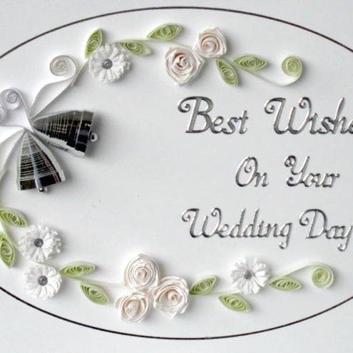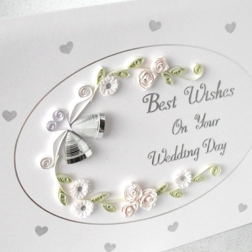 Handmade wedding congratulations card with paper quilling