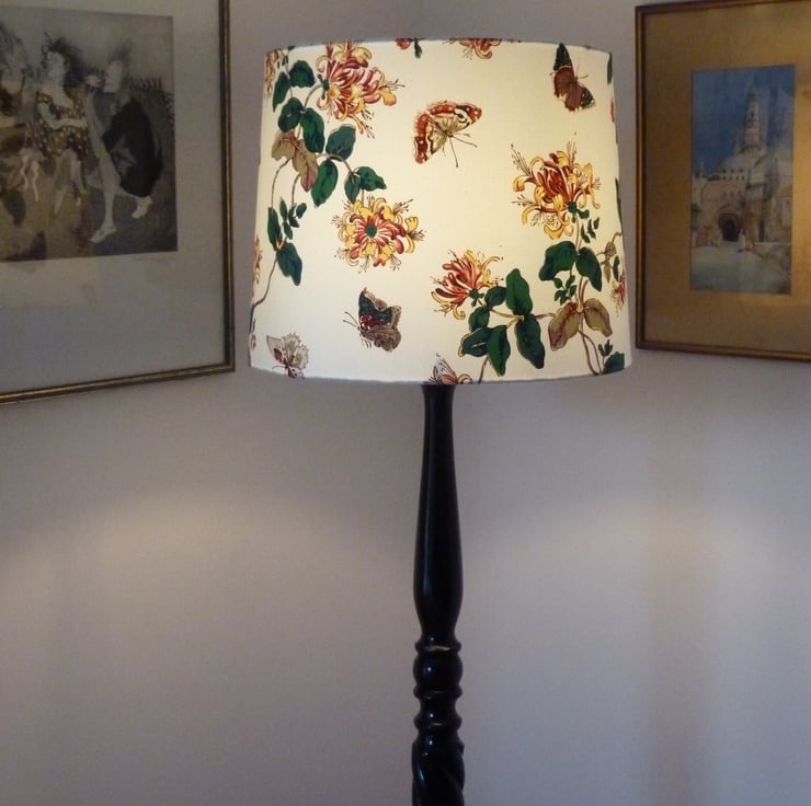 Large slightly tapered lampshade suitable for use on a standard lamp stand.