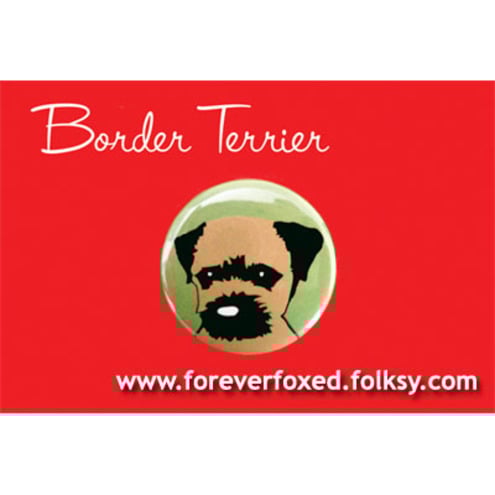 Cute Border Terrier on a lovely shiny badge with a metal pin back.