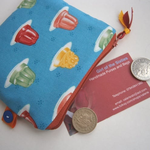 Very cute little jelly printed fabric coin purse, perfect for all your cards, notes and change.