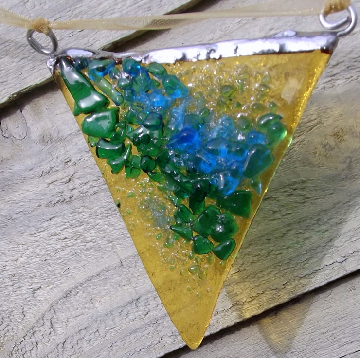 Got this idea from watching waves break, both upon the water and on the sand and have tried to recreate that by painting on the glass with fritt (ground up glass)
