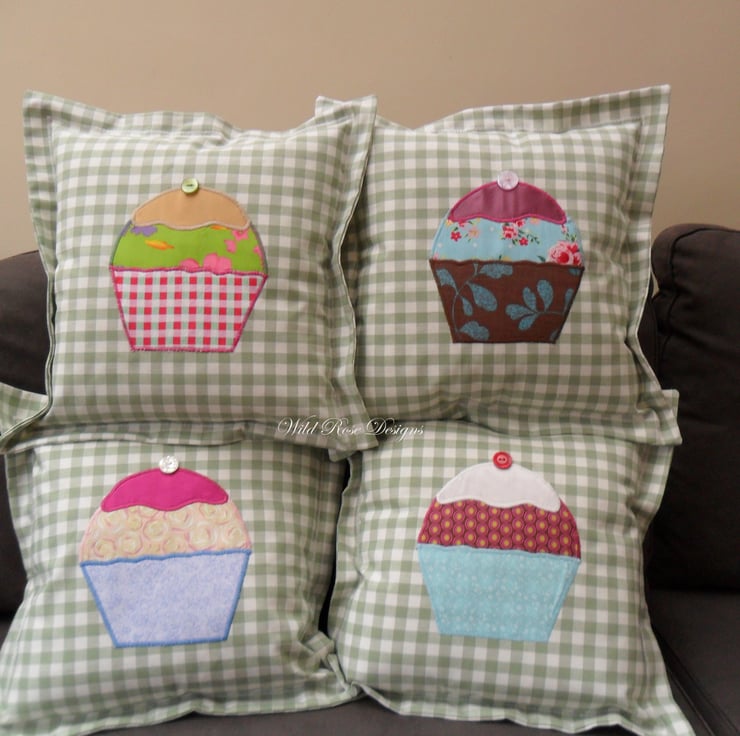 These cushions are the first items in my new homeware range, and I must confess that I 'borrowed' the cupcake idea from my Grandaughter who appliqued one onto a wall hanging as a school project. Thanks Ellie :)
