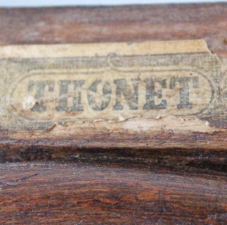 This is a Thonet bentwood armchair, by the famous Austrian designer that greatly developed the technology of bent-wood furniture. It is an original antique piece dating to c. 1920, having a manufacturer's stamp on the underside of the seat.