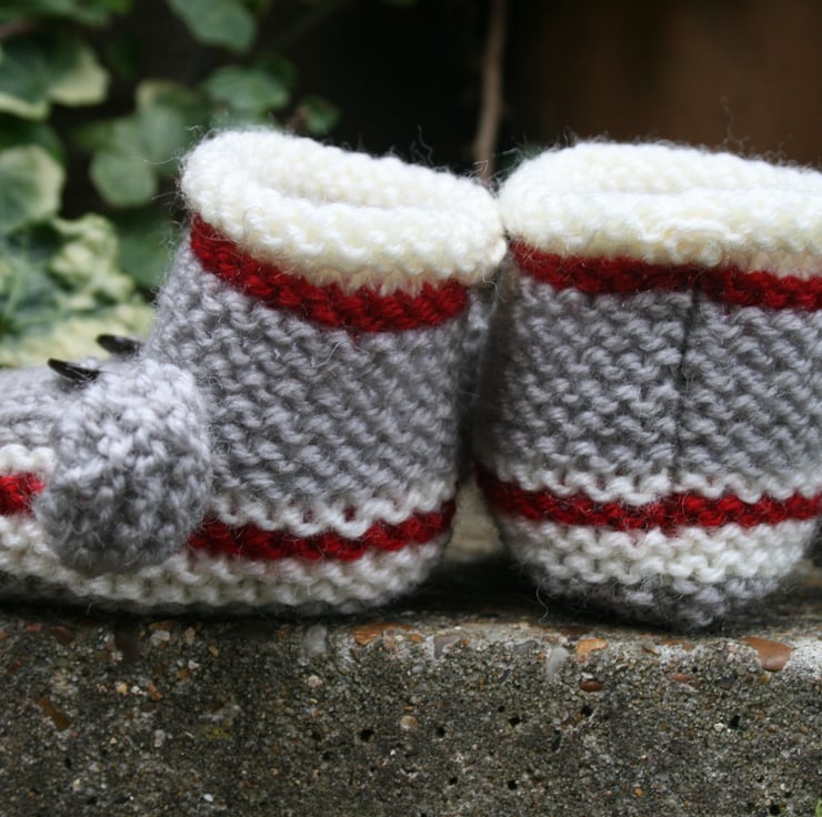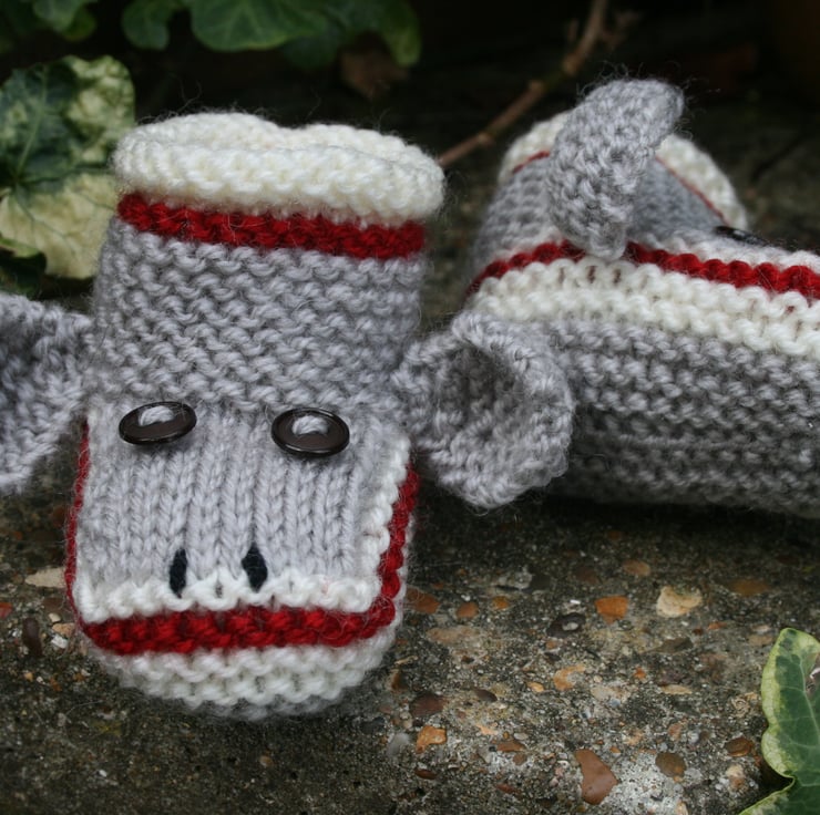 This is a detailed written knitting pattern in pdf format for baby's booties. These cute booties would look great on their own or with any of the wide variety of sock monkey hats availiable online! They knit up quickly in just a couple of evenings!