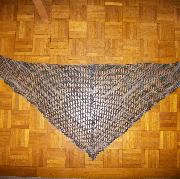 I thought that this yarn would make a lovely scarf, and I have been experimenting with knitting traingular shapes, so this scarf was created