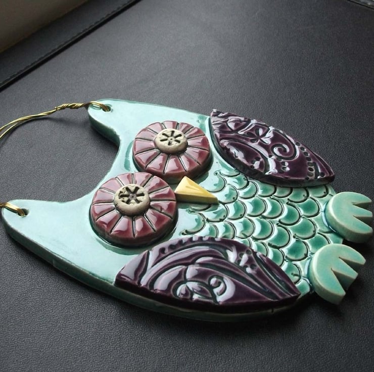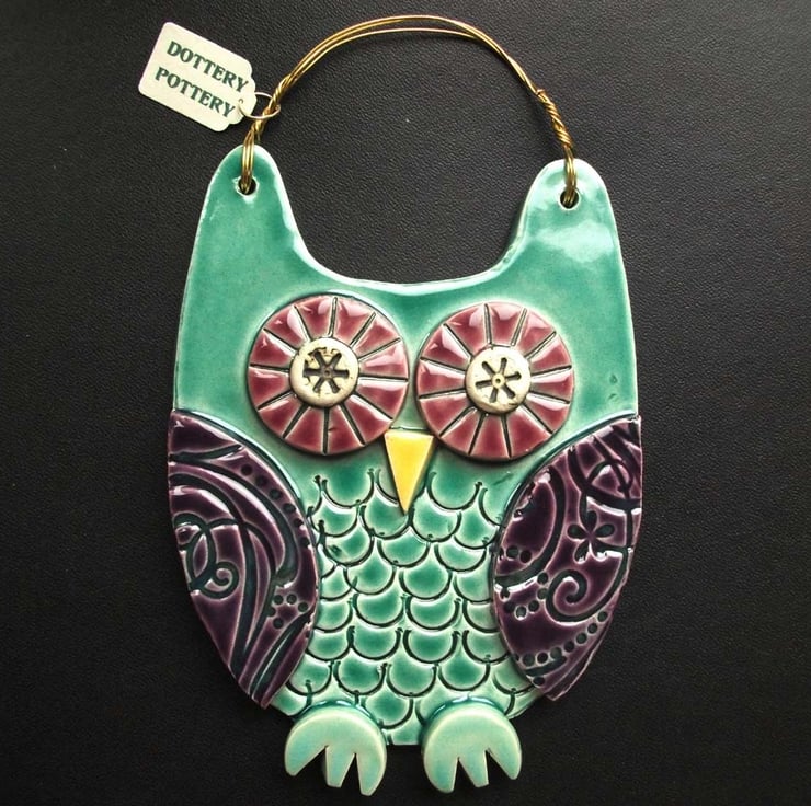 This cute ceramic owl is made from white earthenware clay with all the individual pieces hand cut and decorated.