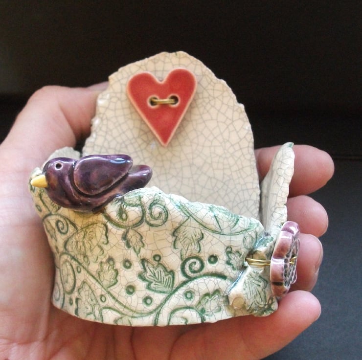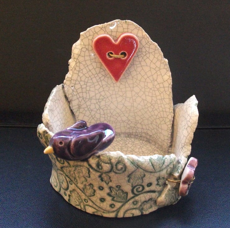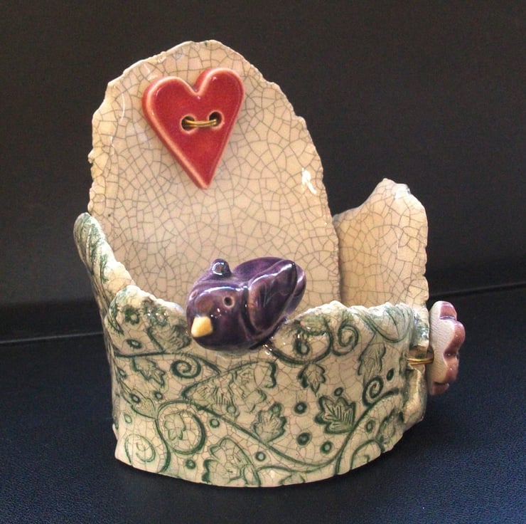 It is then glazed with a vintage style crackle glaze and fired again to a top temperature of 1100 degrees, so it is nice and strong.
