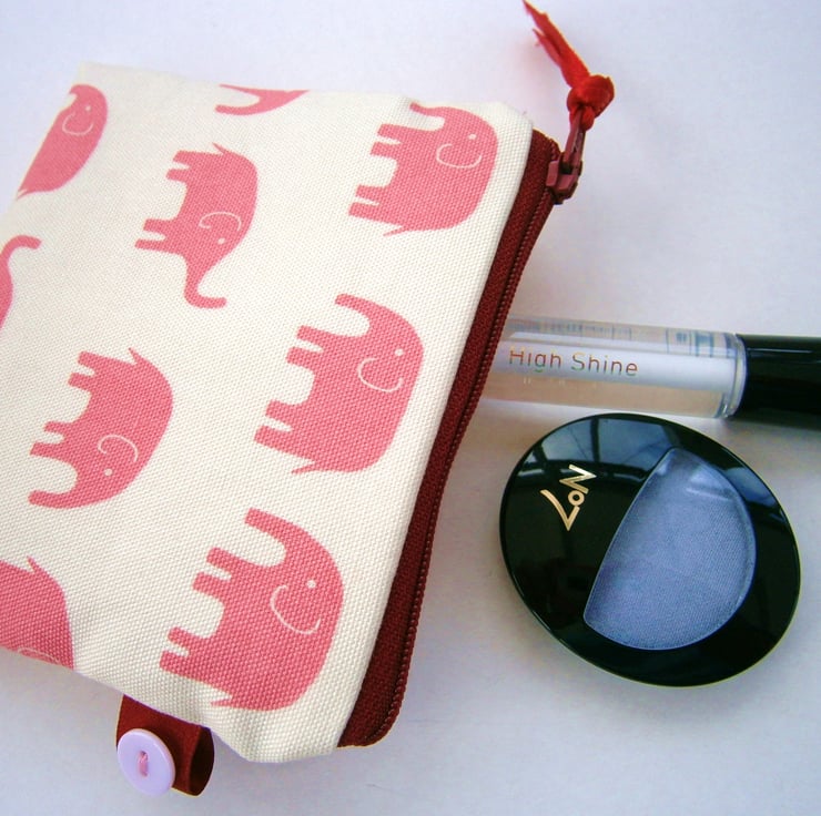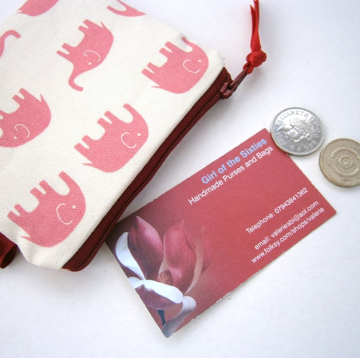 Pretty little pink elephants printed fabric coin purse, perfect for your coins, notes and cards.
