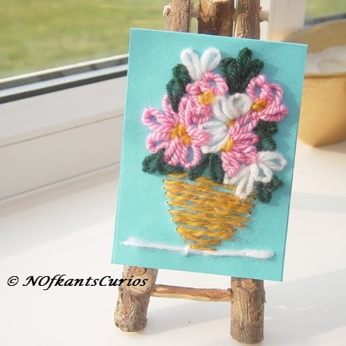 Spring and and promise of Summer was the inspiration behind this ACEO and as I am predominently a yarn crafter, rather than an artist, I felt a textural ACEO, with a variety of differing coloured yarns and textures would suit my style of crafting.