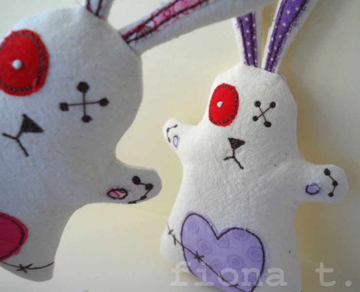 based on original drawings by Little Black Heart, each zombie bunny is unique, and entirely handmade by me on a domestic sewing machine.