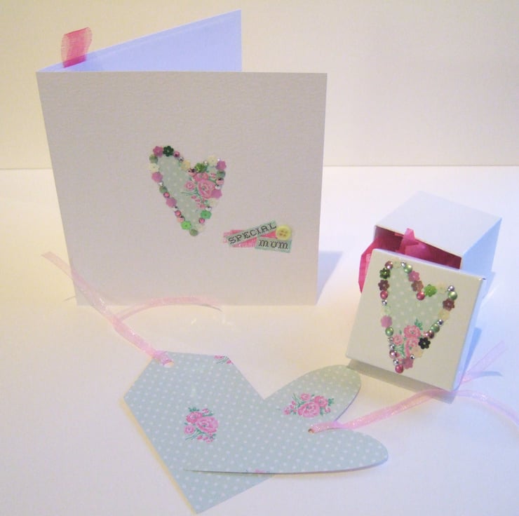 Mothers Day Card,Gift Box & Tags, Handmade Set