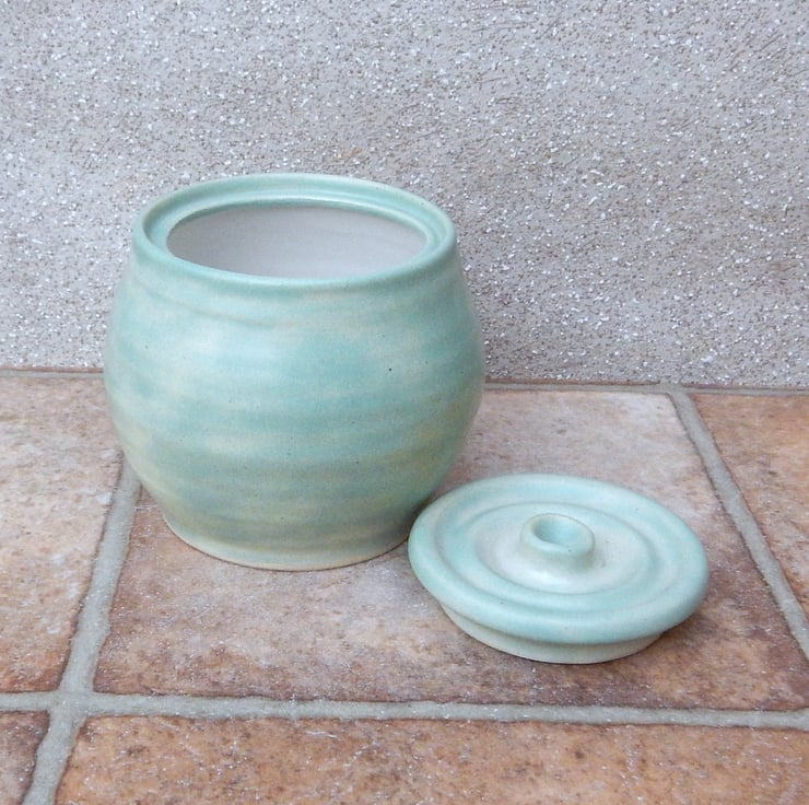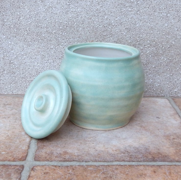 I threw this useful lidded pot on my pottery wheel using strong white stoneware