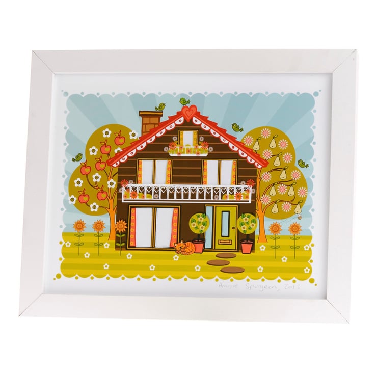 My pretty little house is created by my usual 'inky doodle, scan in, digitally colour then print onto a lovely paper' method.