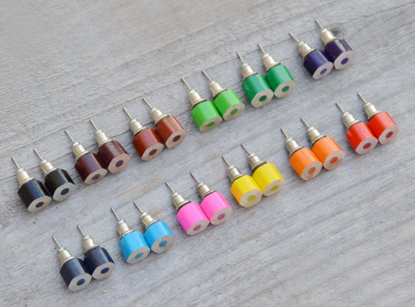 colour pencil ear studs, the hexagon version in candy colours