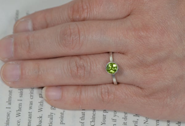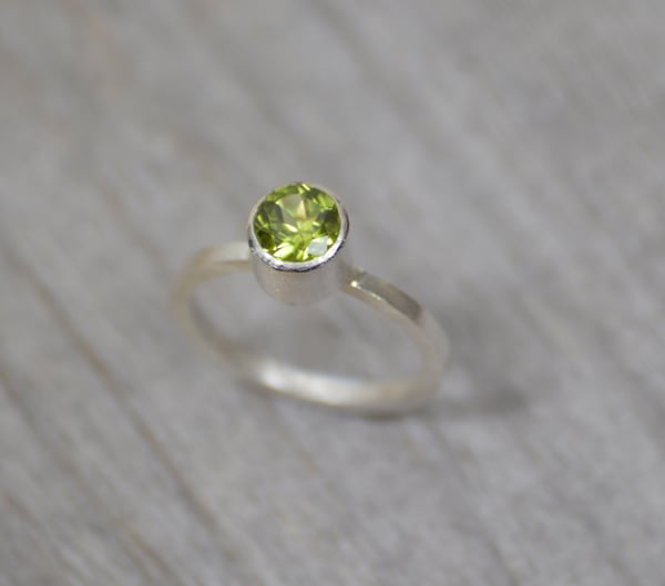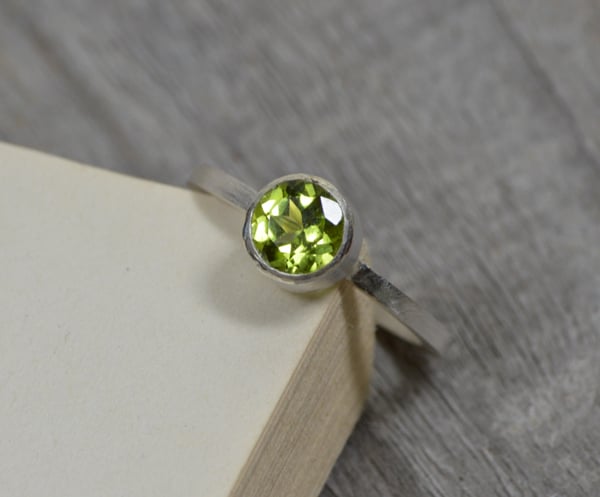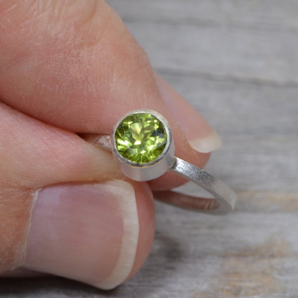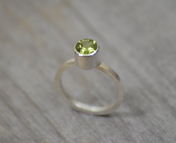 This leaf green peridot ring is handmade in solid sterling silver at my studio in Cornwall, UK. The natural peridot featuring on this ring is untreated.