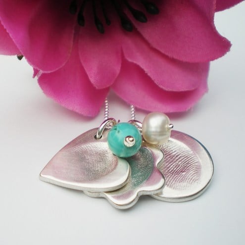 A fine silver charm necklace with your loved one's fingerprint or thumbprint. Beautiful gift for a proud mummy or grandma!
