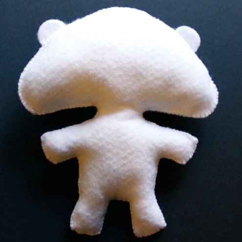 This super cute polar bear has been hand stitched from felt. He is entirely white apart from black stitching for his features. Stuffing is synthetic and hygienic. He stands approx 15 cm tall and 12.5 cm across. NB This is not intended for and should not be given to small children however would make an excellent gift for any grownup!