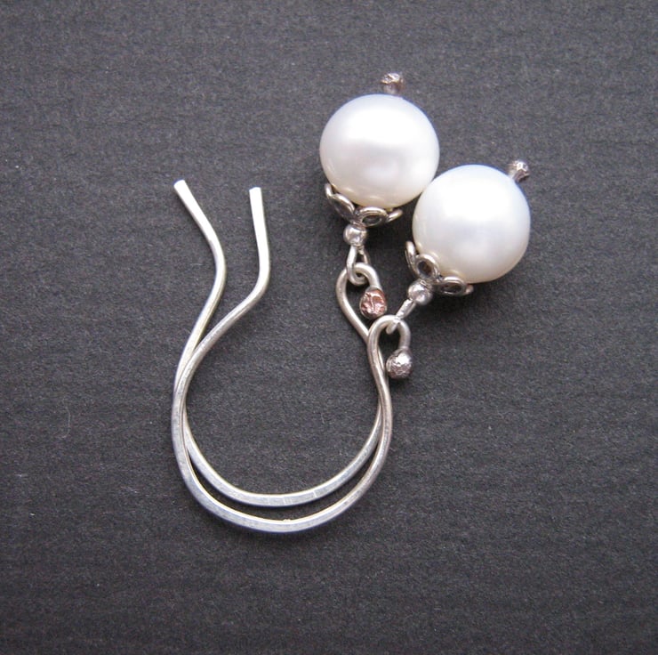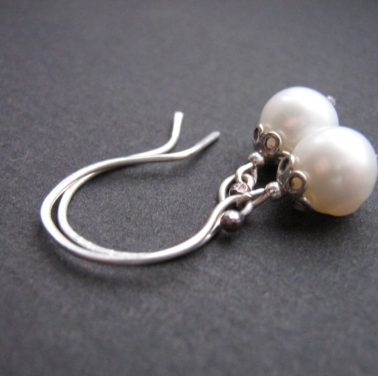 These gorgeous ivory freshwater pearls measure 9mm across and hang from handcrafted sterilng silver ear hooks which have been fired to create the decorative ball ends. This simple but stunning design would even be perfect for bridal wear. If you wish I can design matching accessories too. The overall drop length is approximately 33mm.