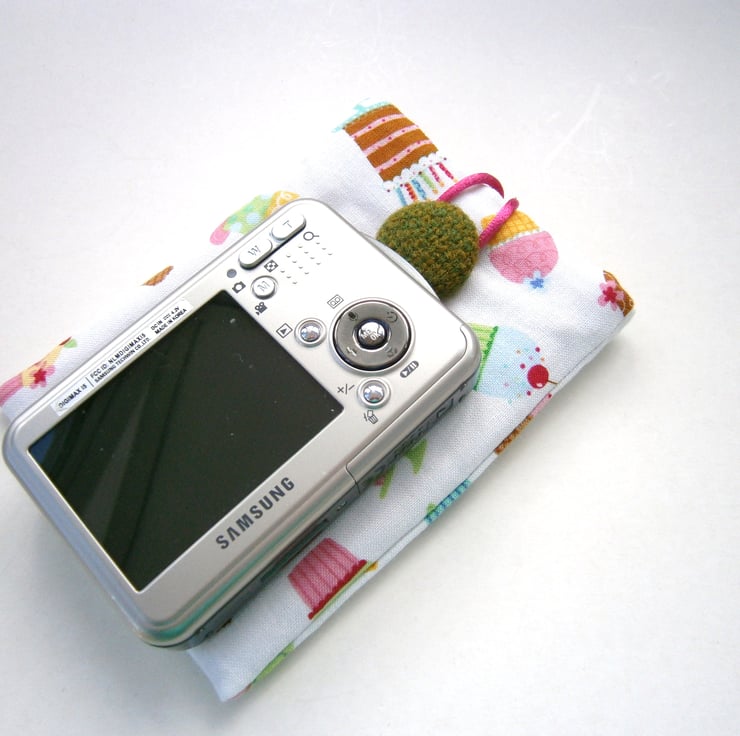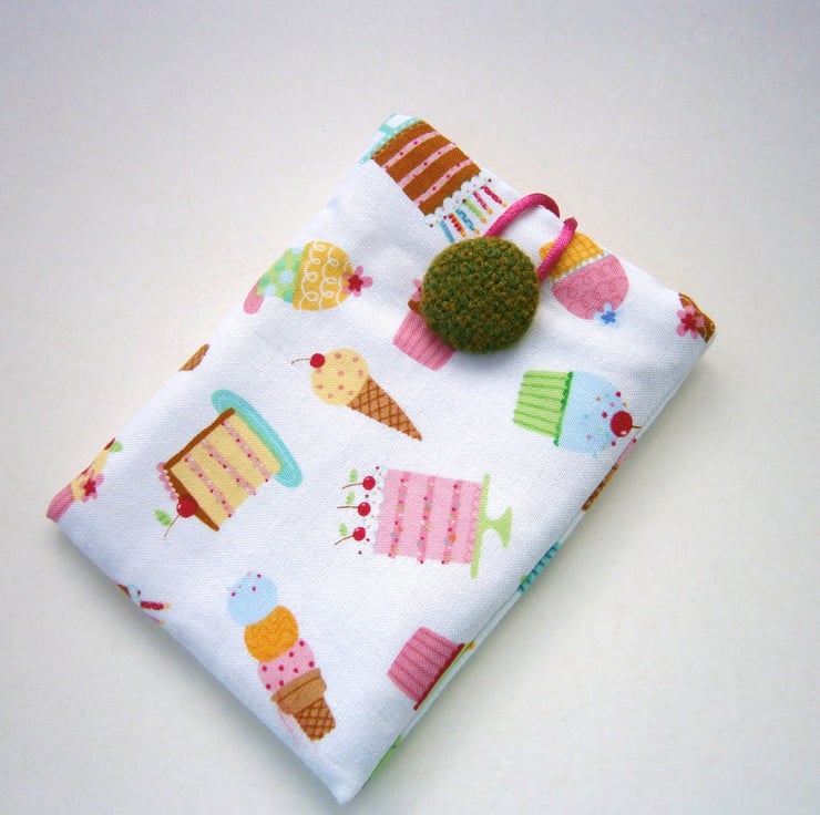 Cute little white cupcake I phone/camera case with lining and button fastener