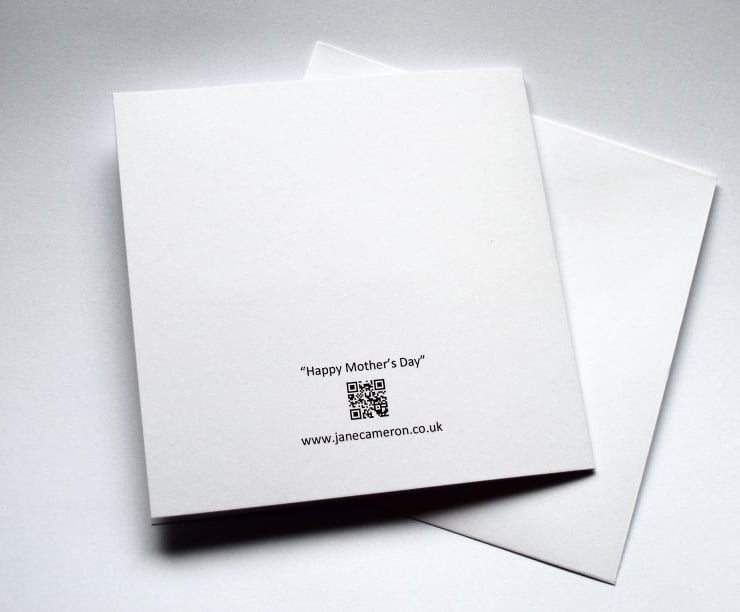 Suitable for the geeky lady in your life, or for anyone else who appreciates this sort of thing (translation on the back!), the QR code is fully scannable.