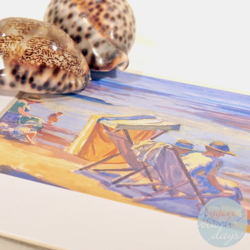 There are 8 watercolour paintings of beach scenes from the 1920's available. They all have amazing clouds and really give you a feeling of holidays or day trips to the seaside. This design is called THE BEACH please see my other items for the other designs.