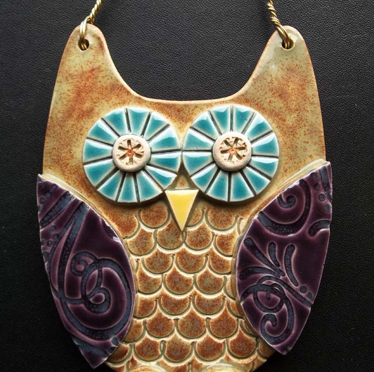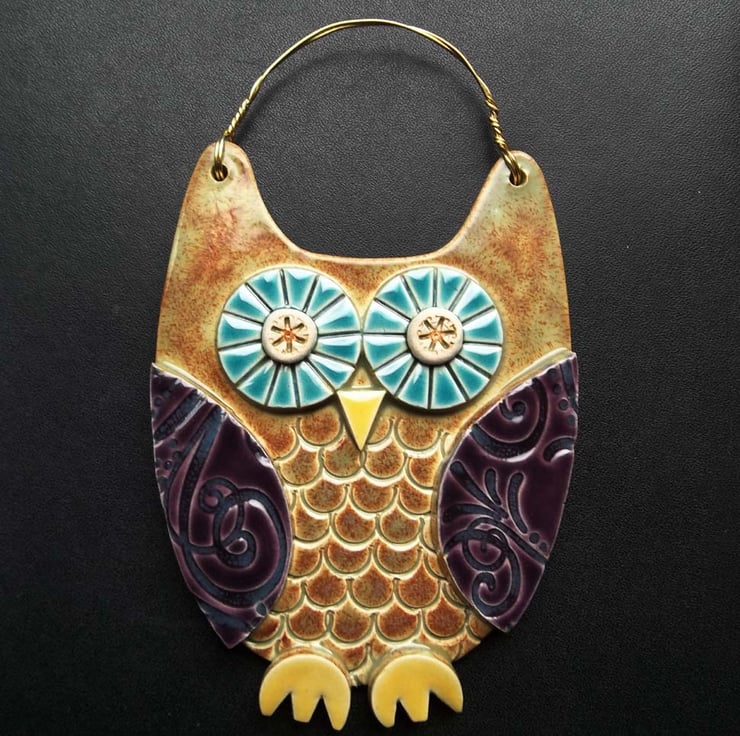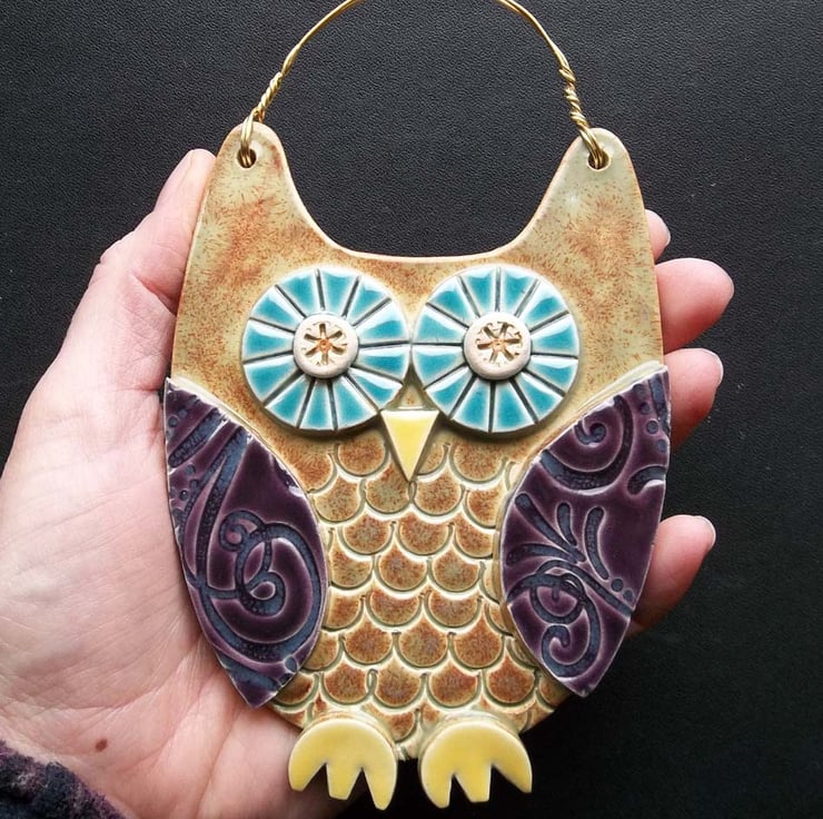This cute ceramic owl is made from white earthenware clay with all the individual pieces hand cut and decorated.