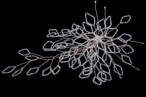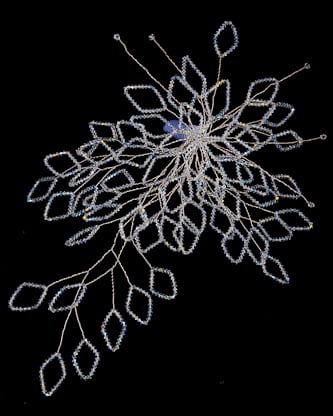 It is made approximately of 1500 4mm AB Bicone crystals (AB, Aurore Boreale) and approximately 80 metres of 0.4mm silver plated wire.