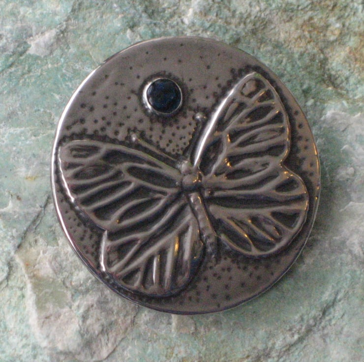 Each pewter piece has been individually made by hand (not cast) to my own design. A pattern is raised on a sheet of pewter, then the raised area is filled. The item is then mounted on a rigid base,chemically patinated, then polished.Modern pewter is lead-free and after patination has a shiny,almost reflective,finish.It does not blacken like silver and can be brightened, if necessary,with a smear of metal polish and a buffing with a soft cloth.
