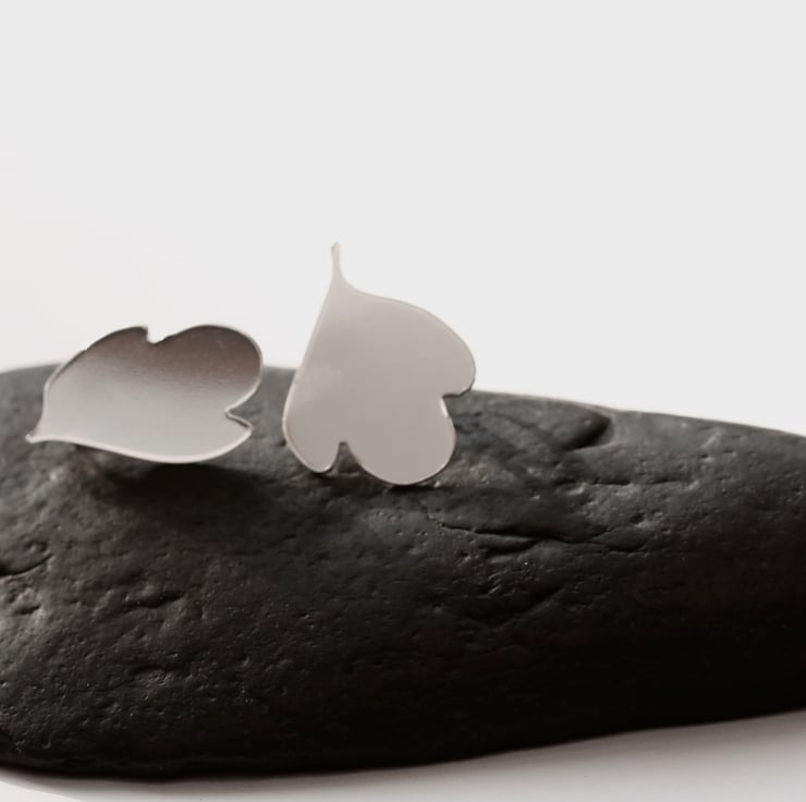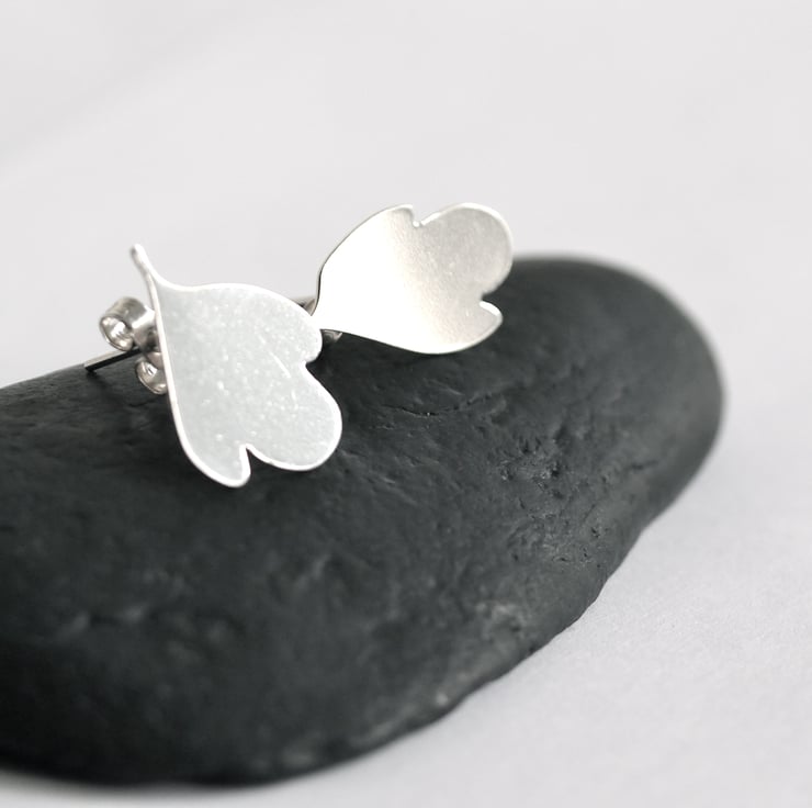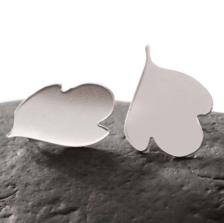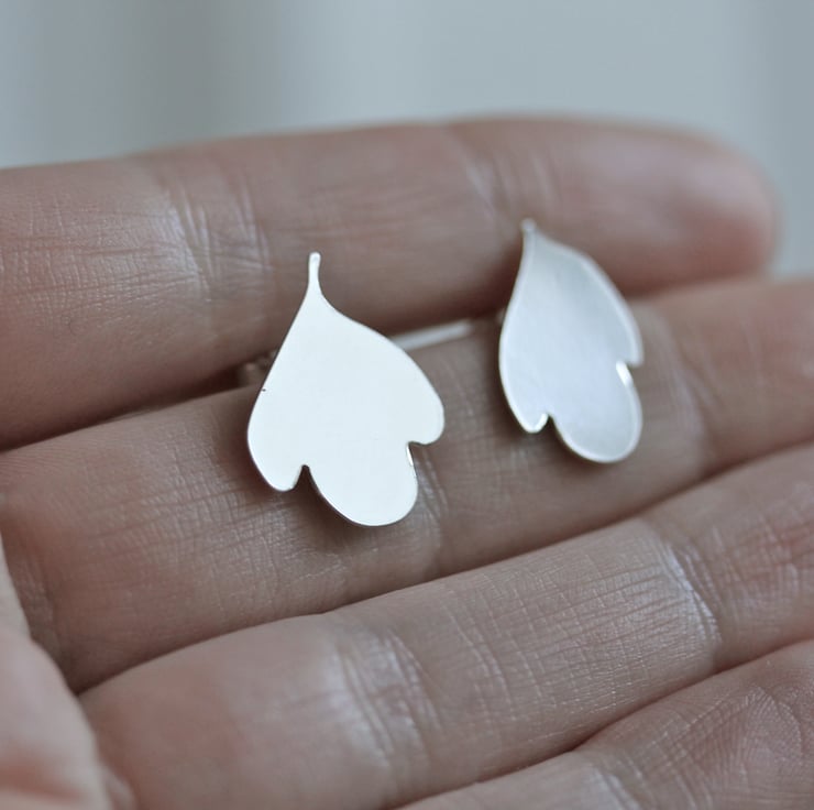 Garden Leaf stud earrings, handmade in sterling silver and given a polished finish.