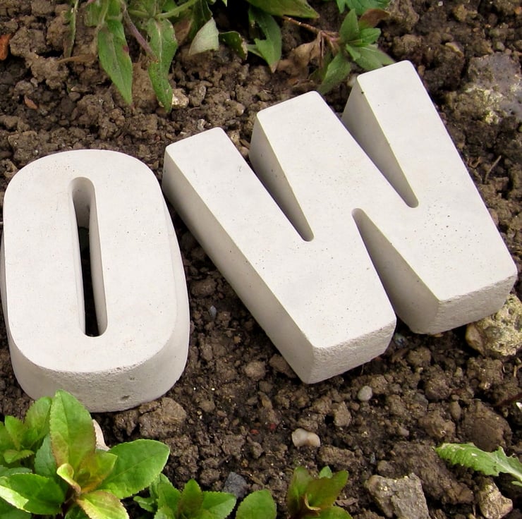 These handcast concrete letters are a great decoration for your garden. You could place them flat in a border, veg bed, or on a deck or patio. Or you could rest them up against a raised bed. Also due to the weight of each letter they can be used to weigh down fleece, or plastic sheet plant protection, weed suppressing matting, or to weigh down the corners of a tablecloth on a garden table on a windy day.