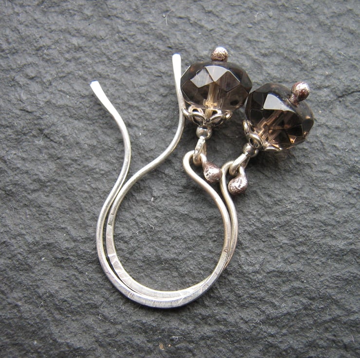 Delicate beads of smoky quartz (8x5mm) hang from hand-crafted sterling silver ear hooks making these stunning drop earrings. The beads are faceted to increase light reflection, making them a real eye-catching set.