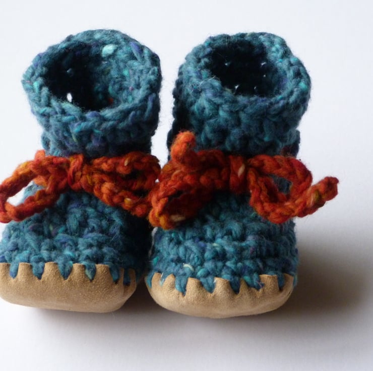 85% wool, 15% angora hand crochet baby bootees