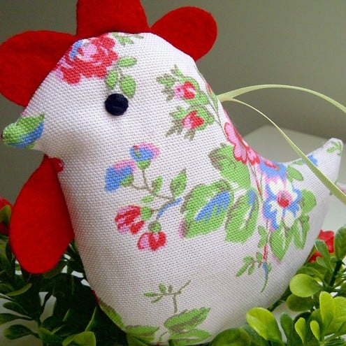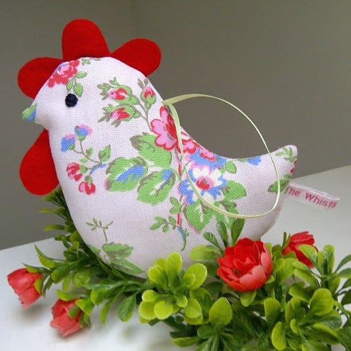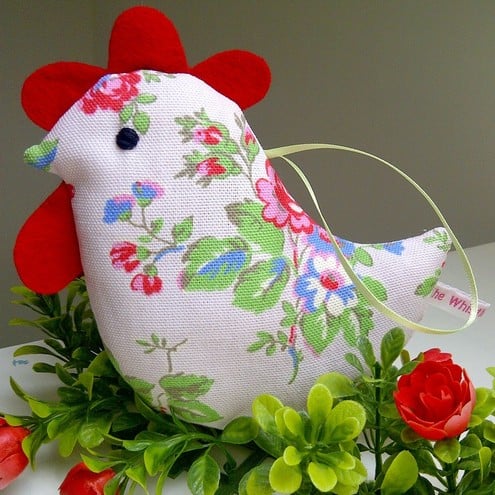 The chicken measures 14cm long and 15.5cm high, plus the hanging ribbon length.