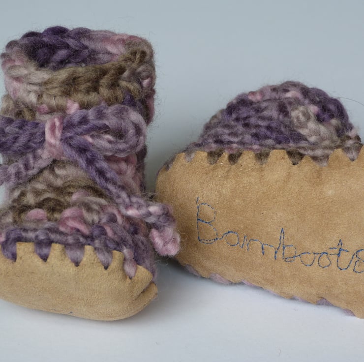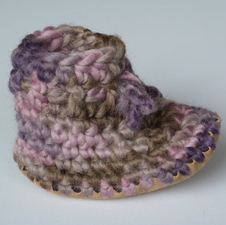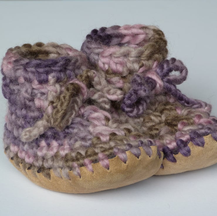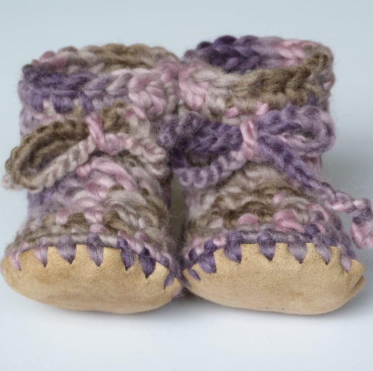 These funky little shoes will keep your baby's feet snug and warm and add a dash of colour to any outfit! Warm merino wool fabric with stretch for comfort and growing room. A perfect gift for a baby girl.