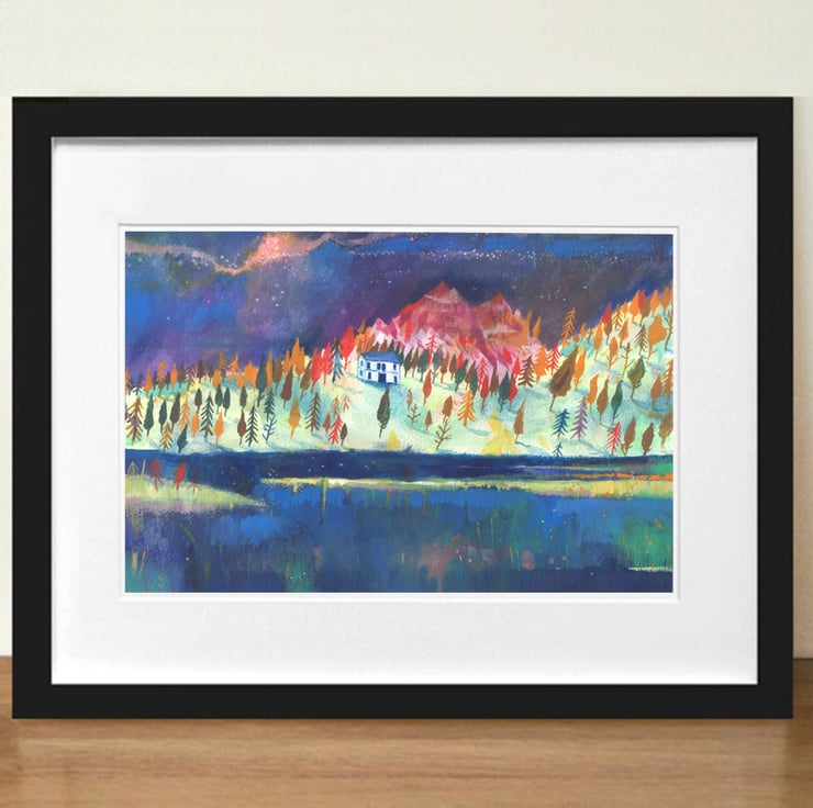 Print size A4, this print will fit into a standard sized frame (as photographed) - all prints are printed at a printing press using high quality non fade digital inks and 160 gsm paper, and signed by me the artist
