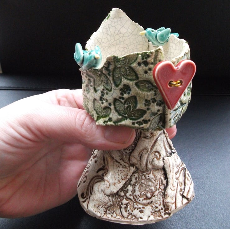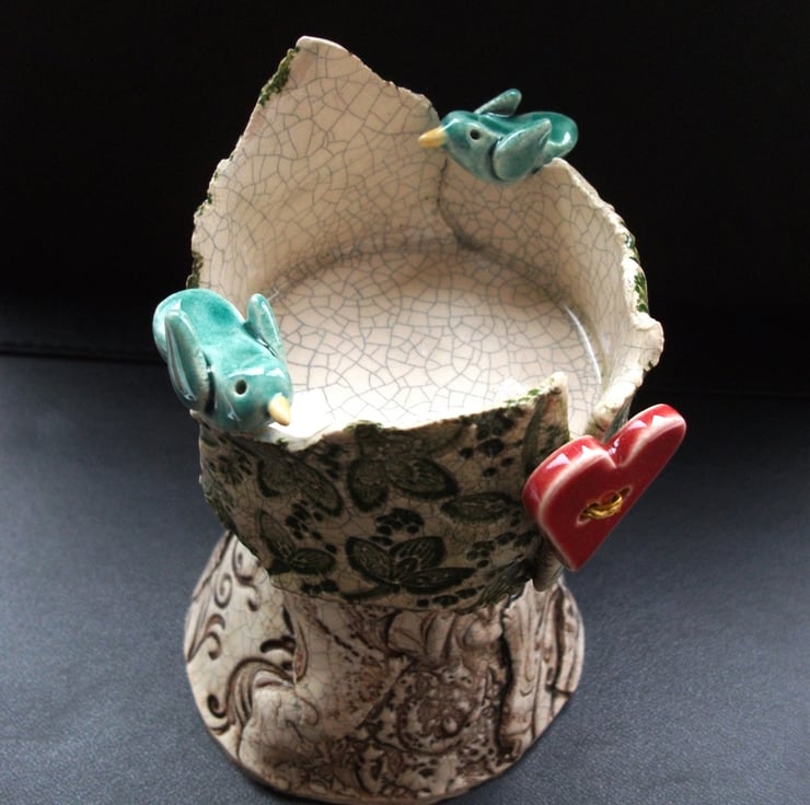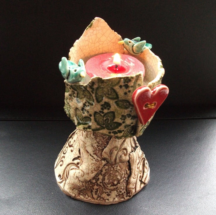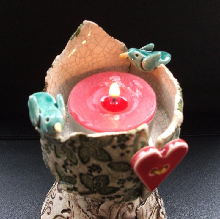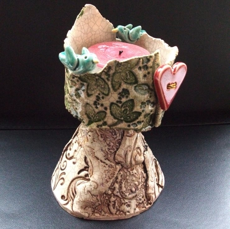 I am really enjoying watching the birds in the garden at the moment as they search for winter sustenance - so I thought that I would make a bird in a tree candle holder.
