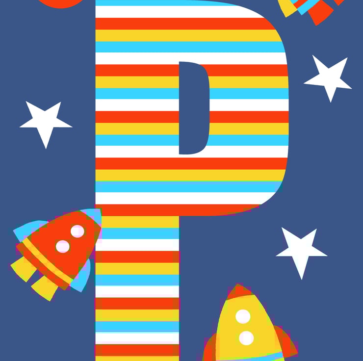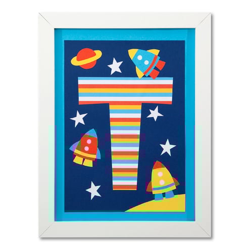 Blast off into space with this personalised initial framed print!
