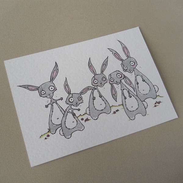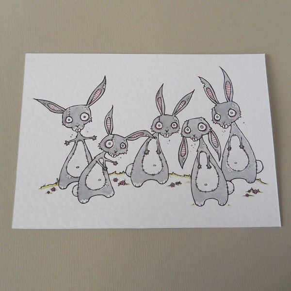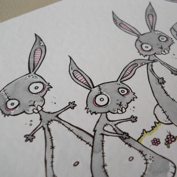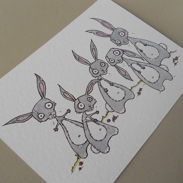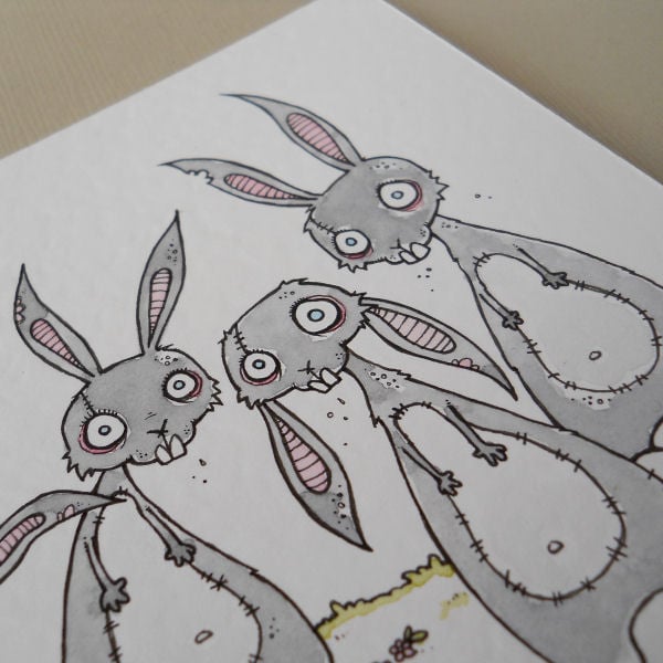 argh! run for your very lives! these adorably gruesome zombie rabbits are on the loose, and are coming for you! and i'm not so sure they look very vegetarian...