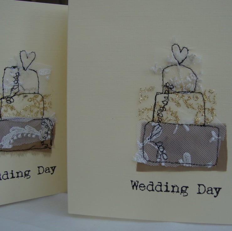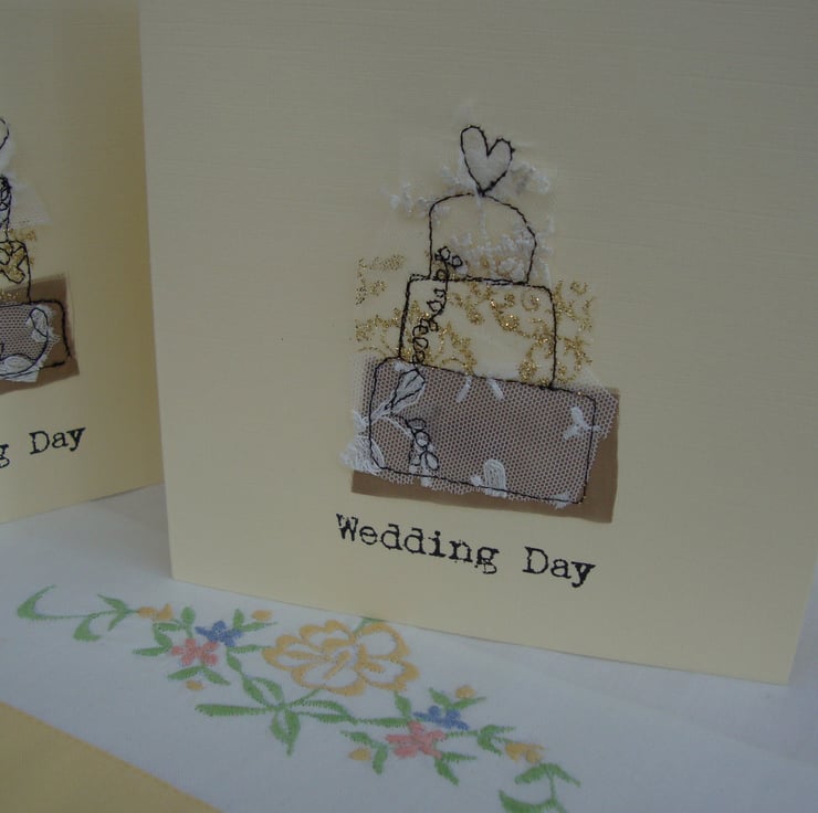 for a special day you need a special card and these cards are made from upcycled fabrics and free machined and are just perfect to give to the newly weds