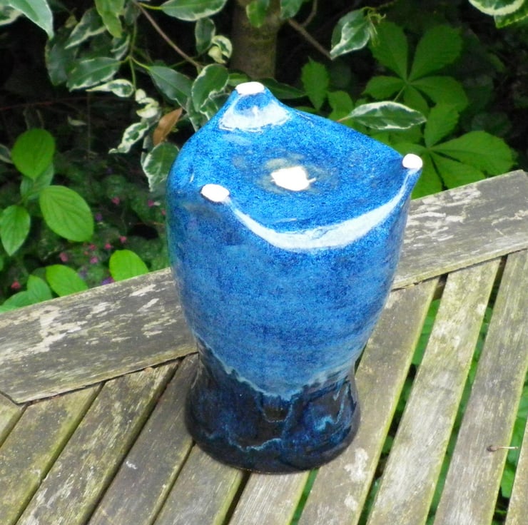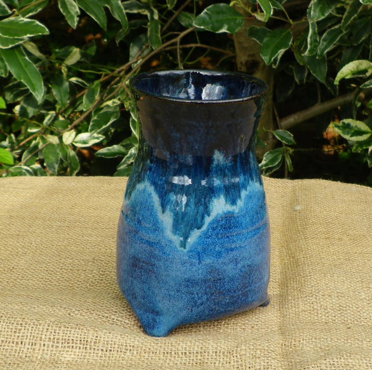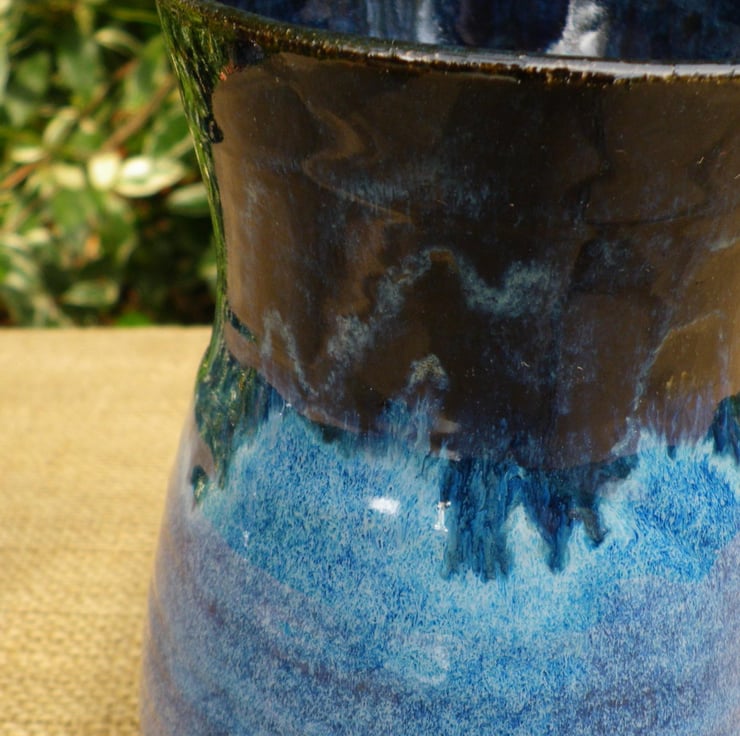 I've finished it in a lovely mid blue glaze with a contrasting runny dark blue reactive glaze drizzled over the rim.