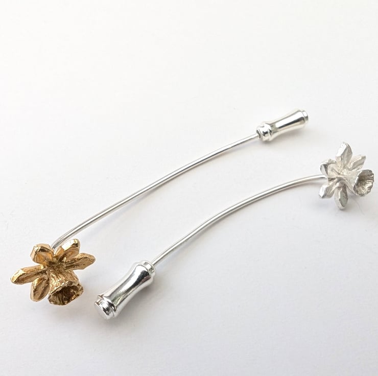 Daffodil Pin Brooch - Handmade in Sterling Silver