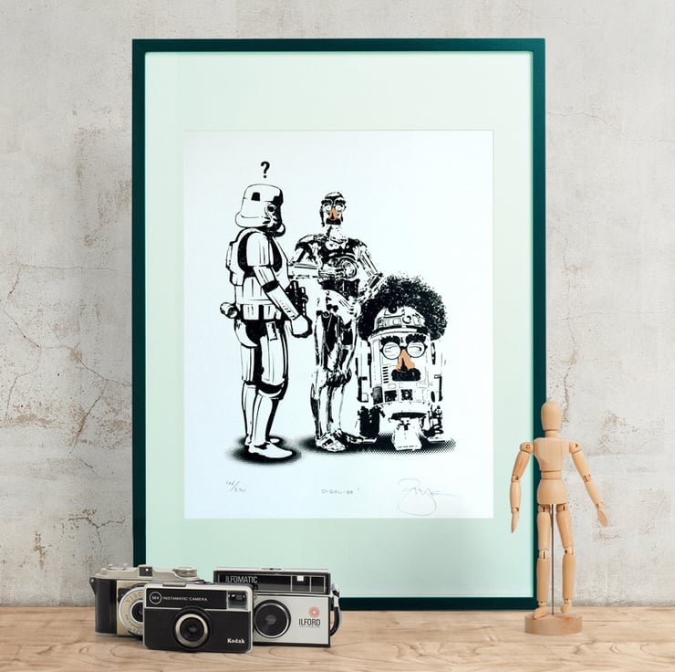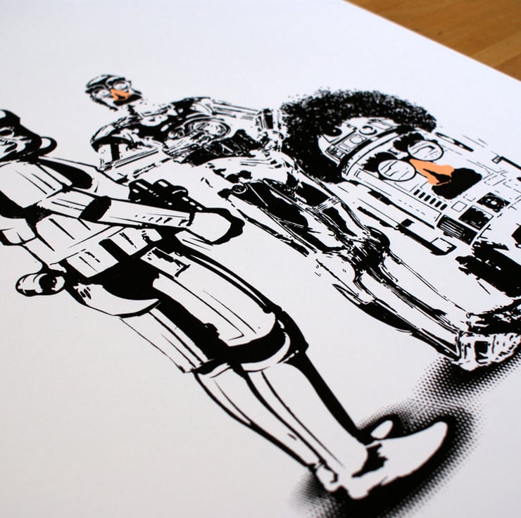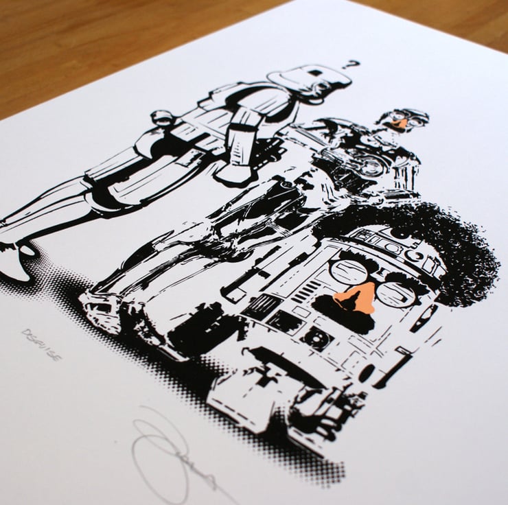 I got the idea for this one while I was working on the the Google 'Those Droids' screen print, I particularly like R2 D2s afro ;-)