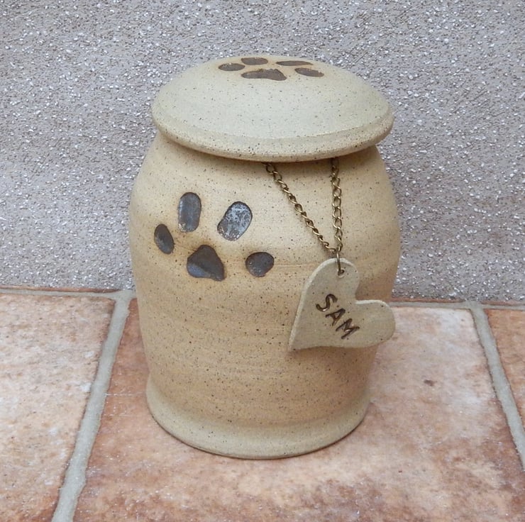 This pet urn or burial urn, keepsake urn or memorial urn is a lovely way to commemorate your beloved dog or cat.