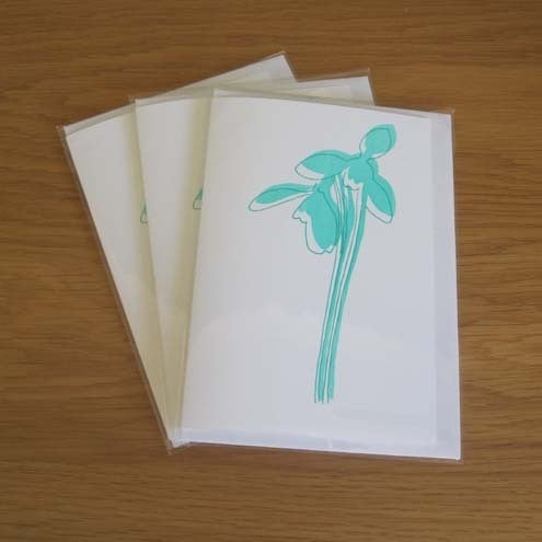 From my original drawing I have then hand screen printed my design onto card in a beautiful pastel green waterbased ink.