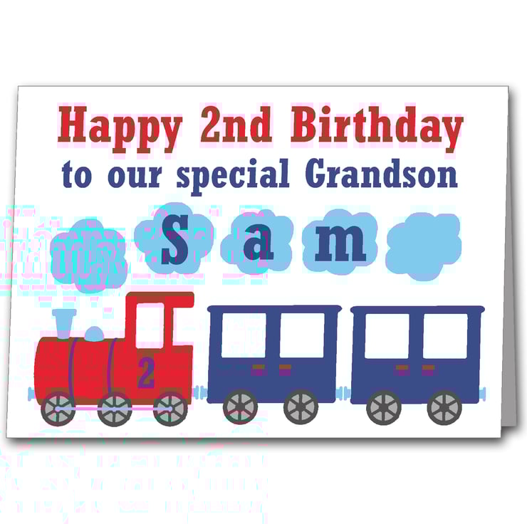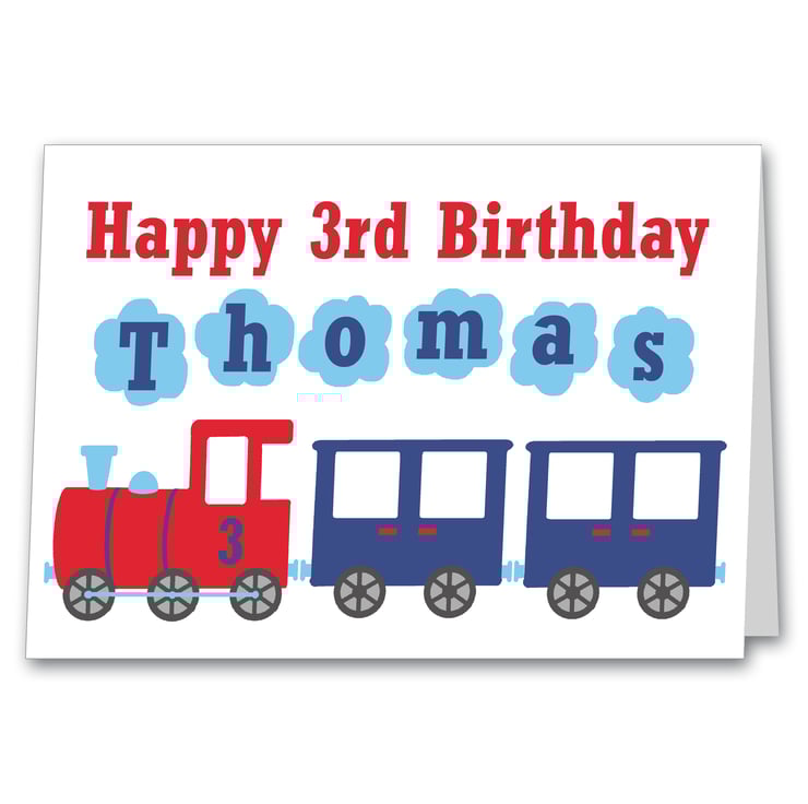 This personalised birthday card features a train with the recipients name in the puffs of steam. I also put the age of the child on the side of the train.