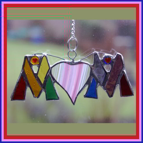 This is a stained glass suncatcher made using the Tiffany copper foil technique.